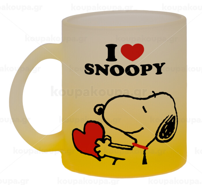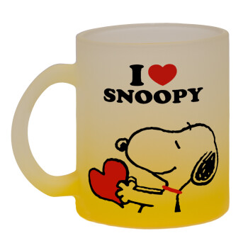 I LOVE SNOOPY, Κούπα γυάλινη δίχρωμη με βάση το κίτρινο ματ, 330ml