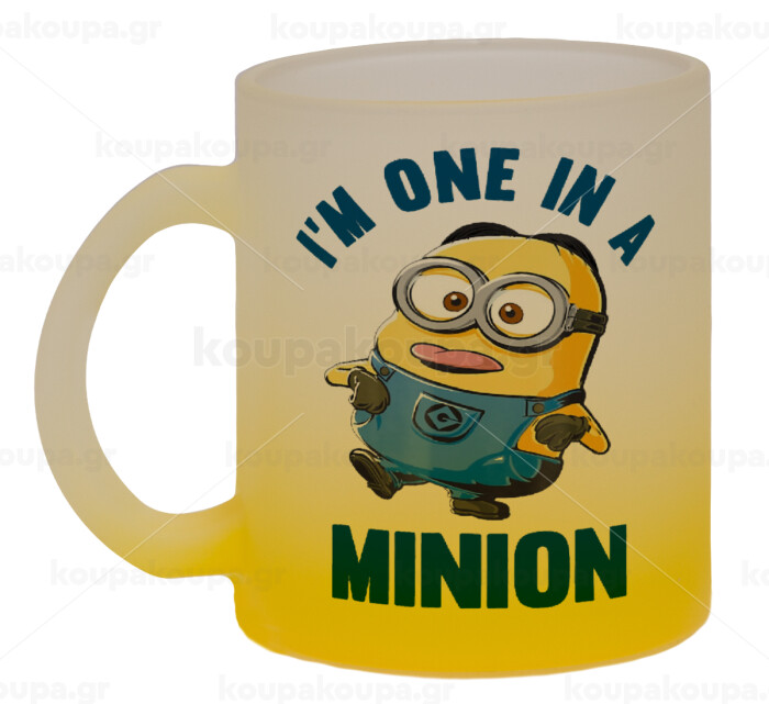 I'm one in a minion, Κούπα γυάλινη δίχρωμη με βάση το κίτρινο ματ, 330ml
