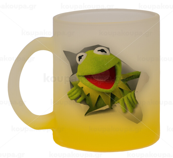 Kermit the frog, Κούπα γυάλινη δίχρωμη με βάση το κίτρινο ματ, 330ml