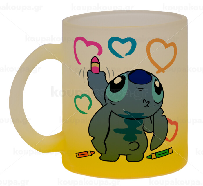 Lilo & Stitch painting, Κούπα γυάλινη δίχρωμη με βάση το κίτρινο ματ, 330ml