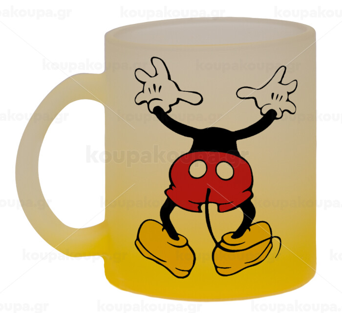 Mickey hide..., Κούπα γυάλινη δίχρωμη με βάση το κίτρινο ματ, 330ml