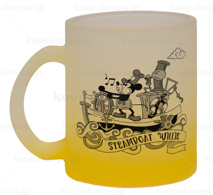 Mickey steamboat, Κούπα γυάλινη δίχρωμη με βάση το κίτρινο ματ, 330ml