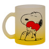 Snoopy, Κούπα γυάλινη δίχρωμη με βάση το κίτρινο ματ, 330ml