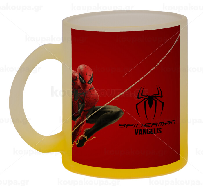 Spiderman kid, Κούπα γυάλινη δίχρωμη με βάση το κίτρινο ματ, 330ml