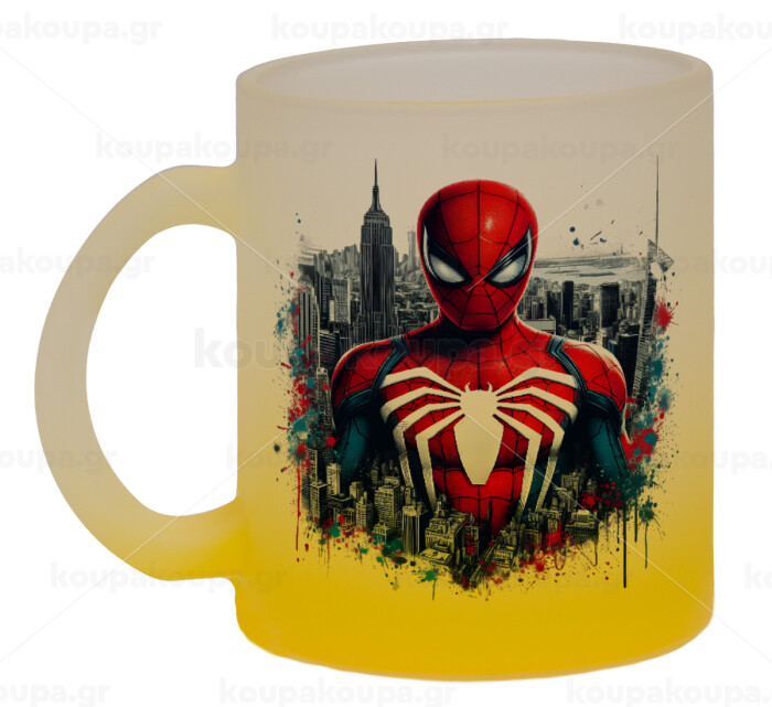 Spiderman City, Κούπα γυάλινη δίχρωμη με βάση το κίτρινο ματ, 330ml