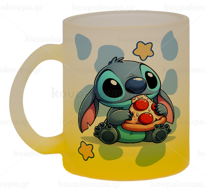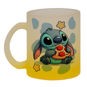 Stitch Pizza, Κούπα γυάλινη δίχρωμη με βάση το κίτρινο ματ, 330ml