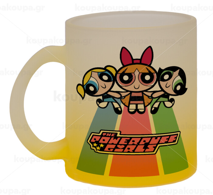 The powerpuff girls , Κούπα γυάλινη δίχρωμη με βάση το κίτρινο ματ, 330ml