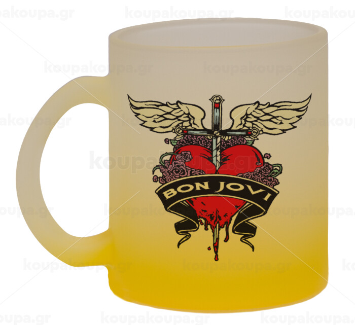 Bon Jovi, Κούπα γυάλινη δίχρωμη με βάση το κίτρινο ματ, 330ml