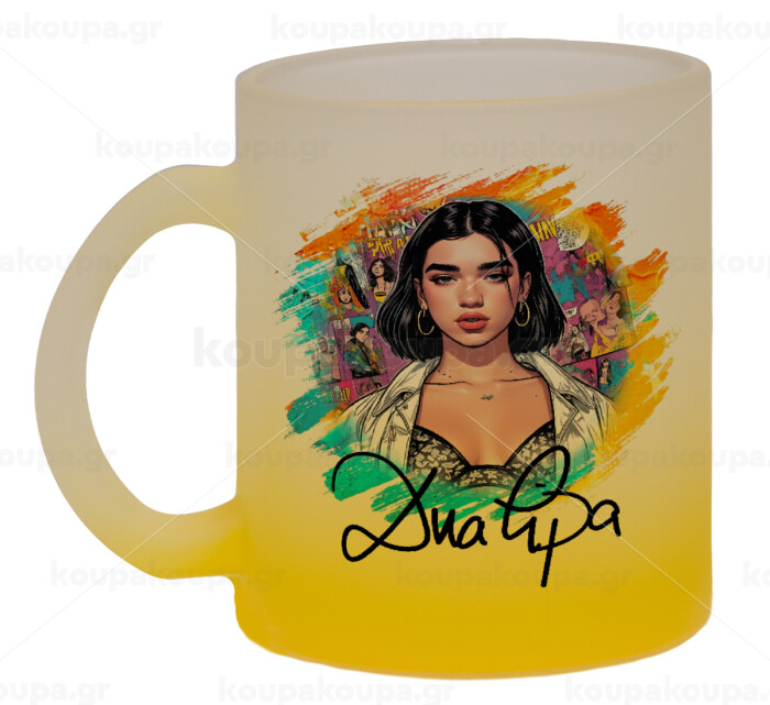 Dua lipa, Κούπα γυάλινη δίχρωμη με βάση το κίτρινο ματ, 330ml