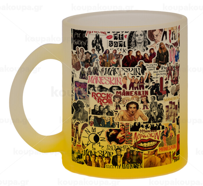 Maneskin stickers, Κούπα γυάλινη δίχρωμη με βάση το κίτρινο ματ, 330ml