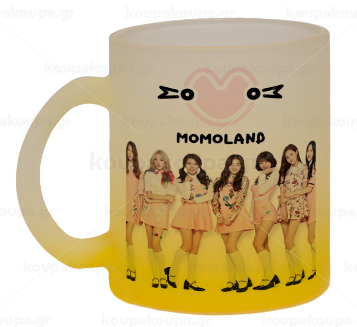 Momoland pink, Κούπα γυάλινη δίχρωμη με βάση το κίτρινο ματ, 330ml