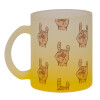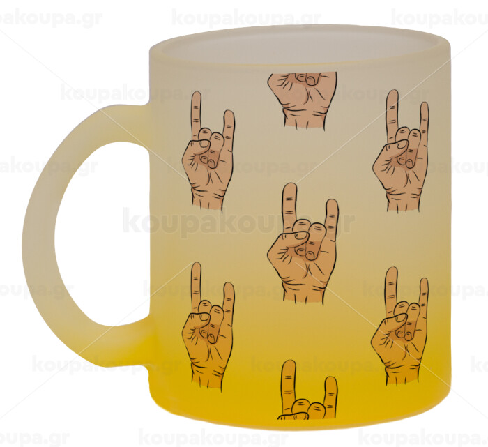 Rock hands, Κούπα γυάλινη δίχρωμη με βάση το κίτρινο ματ, 330ml