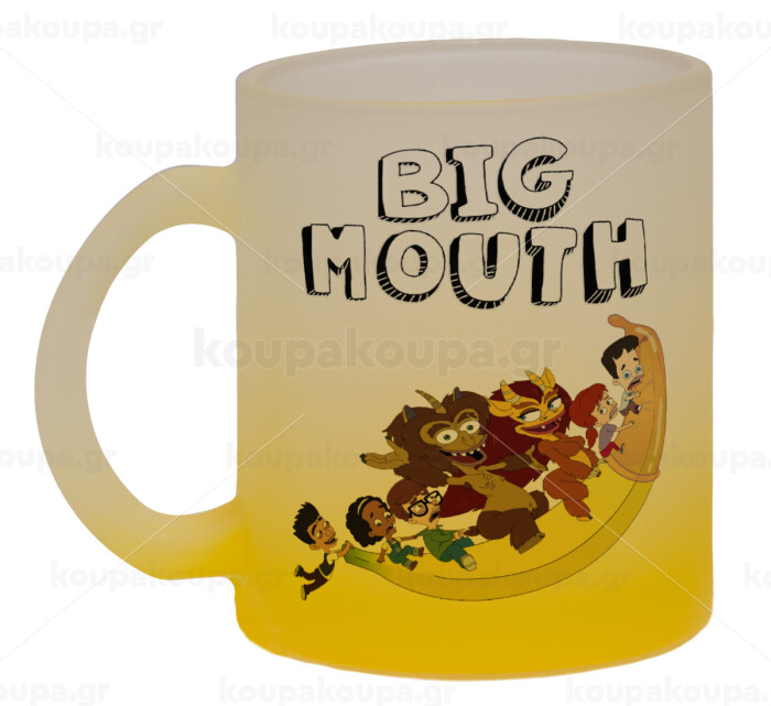 Big mouth, Κούπα γυάλινη δίχρωμη με βάση το κίτρινο ματ, 330ml