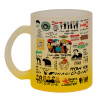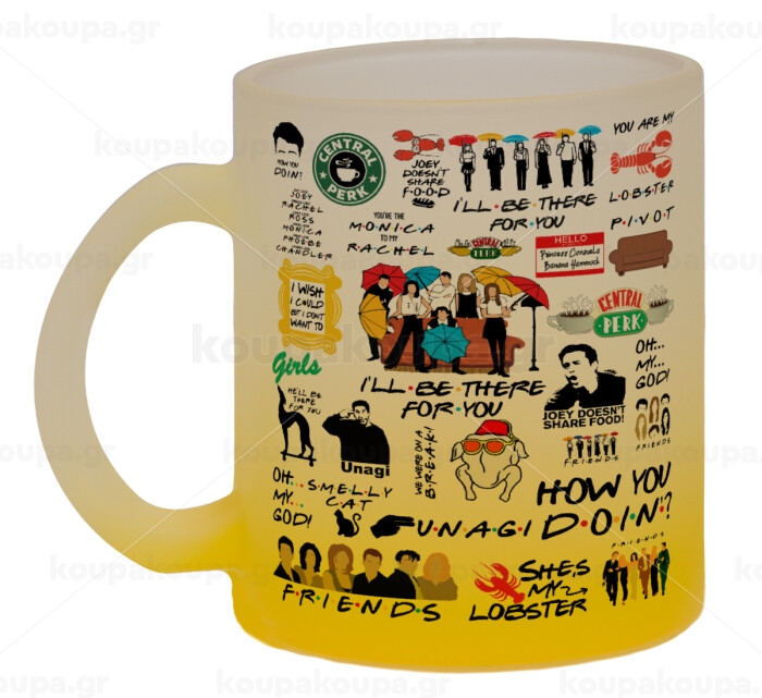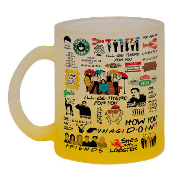 Friends, Κούπα γυάλινη δίχρωμη με βάση το κίτρινο ματ, 330ml
