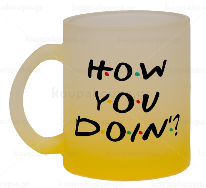 Friends How You Doin'?, Κούπα γυάλινη δίχρωμη με βάση το κίτρινο ματ, 330ml