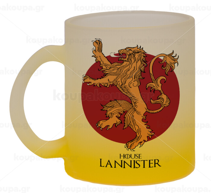 House Lannister GOT, Κούπα γυάλινη δίχρωμη με βάση το κίτρινο ματ, 330ml