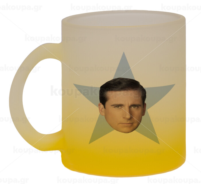 michael the office star, Κούπα γυάλινη δίχρωμη με βάση το κίτρινο ματ, 330ml
