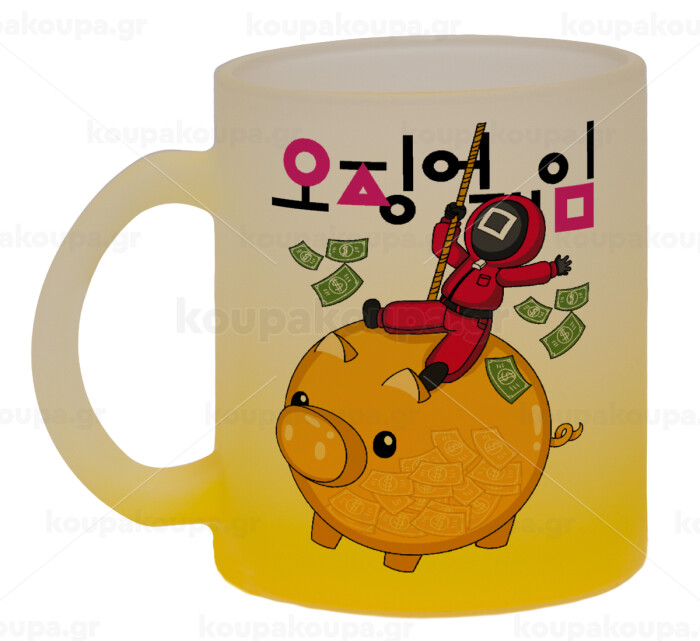 Squid game money pig, Κούπα γυάλινη δίχρωμη με βάση το κίτρινο ματ, 330ml