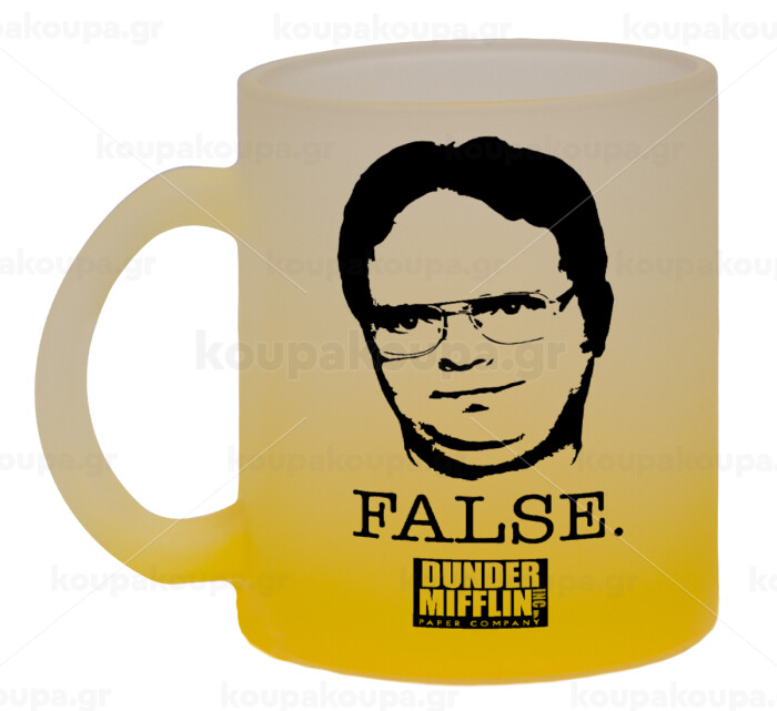 The office Dwight, Κούπα γυάλινη δίχρωμη με βάση το κίτρινο ματ, 330ml