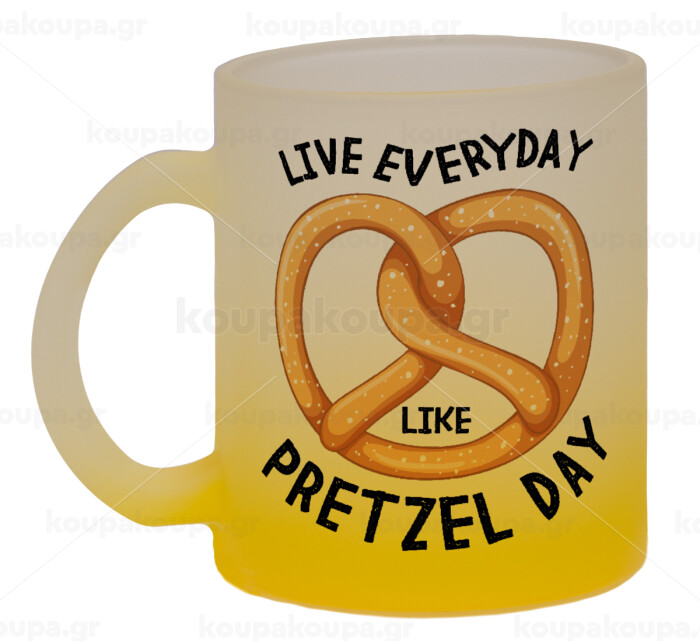 The office, Live every day like pretzel day, Κούπα γυάλινη δίχρωμη με βάση το κίτρινο ματ, 330ml