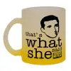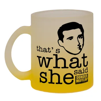The office Michael That's what she said, Κούπα γυάλινη δίχρωμη με βάση το κίτρινο ματ, 330ml