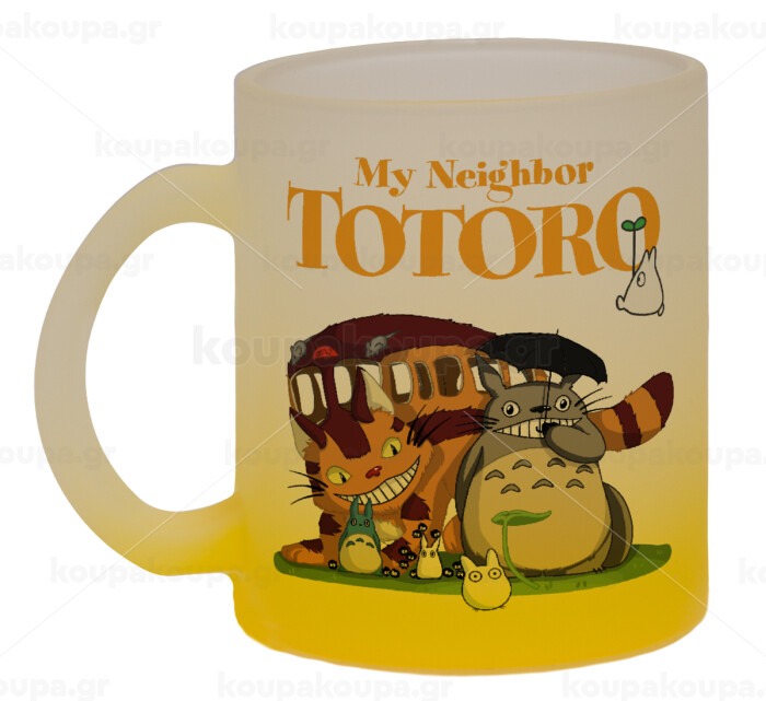 Totoro Catbus, Κούπα γυάλινη δίχρωμη με βάση το κίτρινο ματ, 330ml
