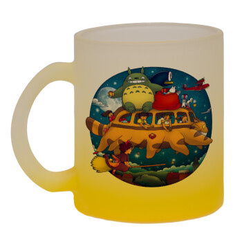 Totoro Catbus, Κούπα γυάλινη δίχρωμη με βάση το κίτρινο ματ, 330ml