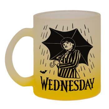 Wednesday Addams, Κούπα γυάλινη δίχρωμη με βάση το κίτρινο ματ, 330ml