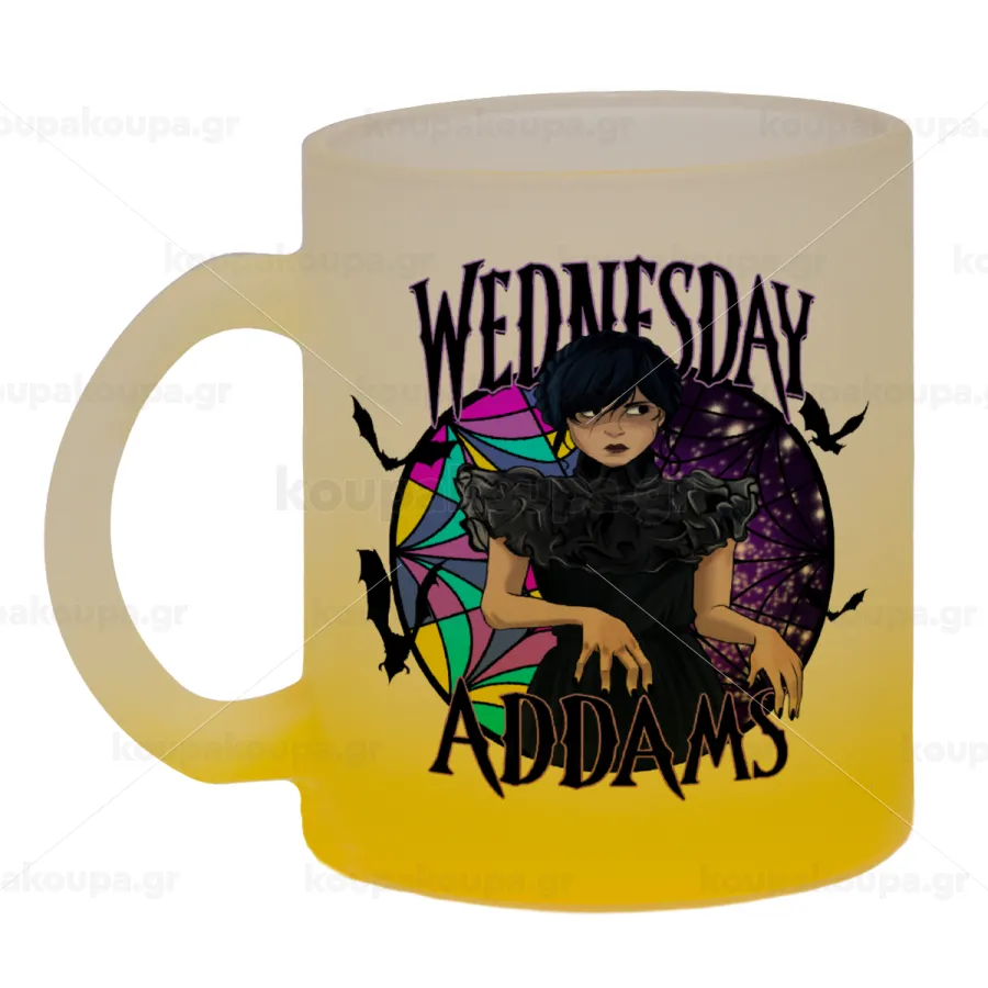 Wednesday Jenna Ortega, Κούπα γυάλινη δίχρωμη με βάση το κίτρινο ματ, 330ml