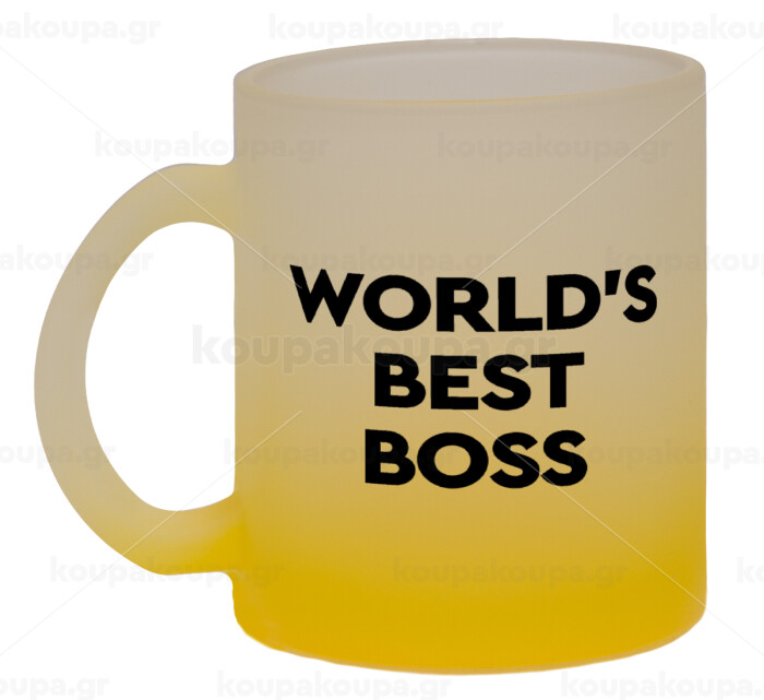 World's best boss, Κούπα γυάλινη δίχρωμη με βάση το κίτρινο ματ, 330ml