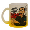 Ροντινέι, "ΠΟΛΥ ΚΟΥΡΑΣΜΕΝΟΣ", Κούπα γυάλινη δίχρωμη με βάση το κίτρινο ματ, 330ml
