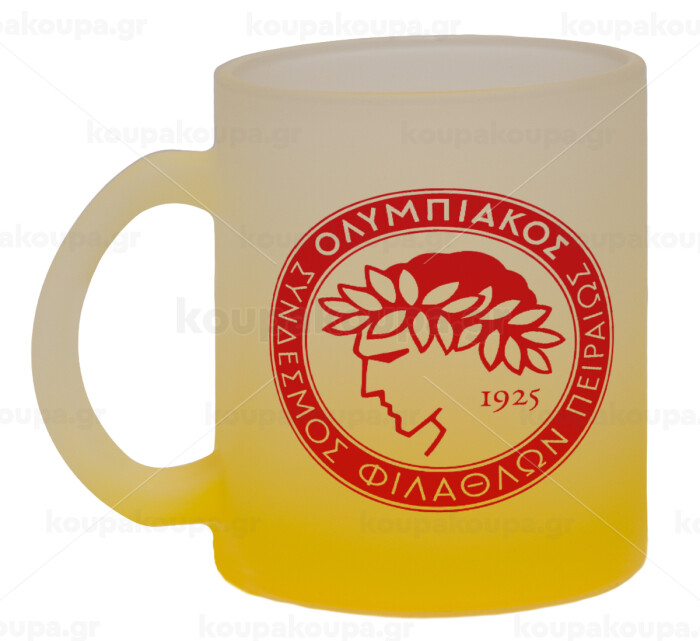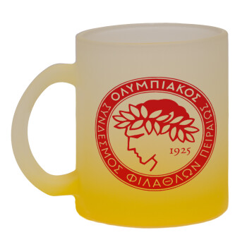 Ολυμπιακός, Κούπα γυάλινη δίχρωμη με βάση το κίτρινο ματ, 330ml