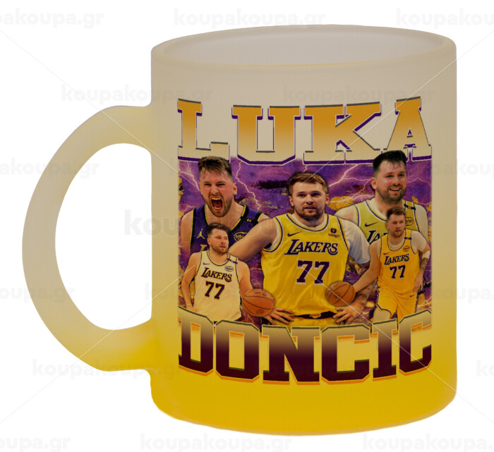 Luka Doncic Basketball , Κούπα γυάλινη δίχρωμη με βάση το κίτρινο ματ, 330ml