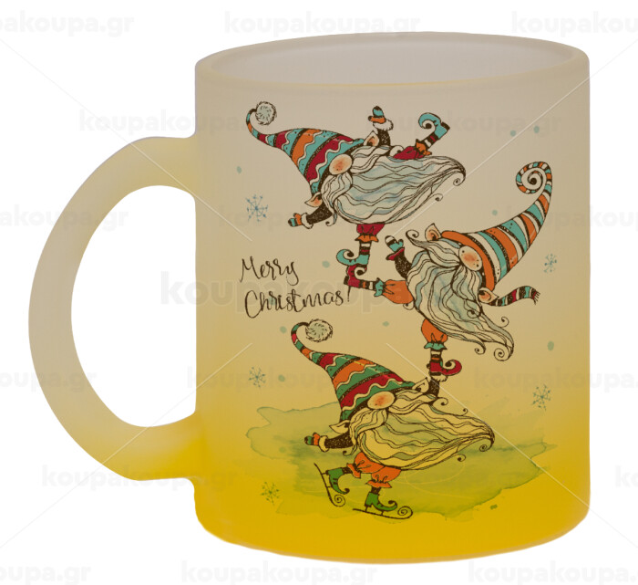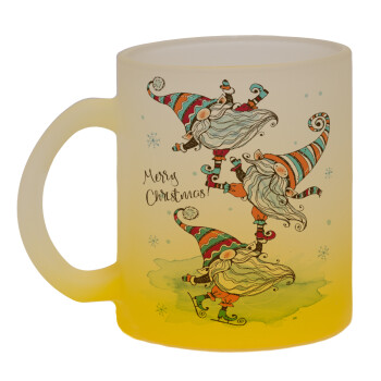 Christmas nordic gnomes, Κούπα γυάλινη δίχρωμη με βάση το κίτρινο ματ, 330ml