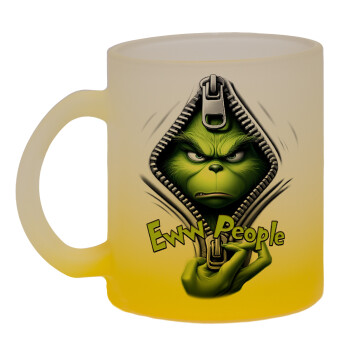 Grinch, eww people, Κούπα γυάλινη δίχρωμη με βάση το κίτρινο ματ, 330ml