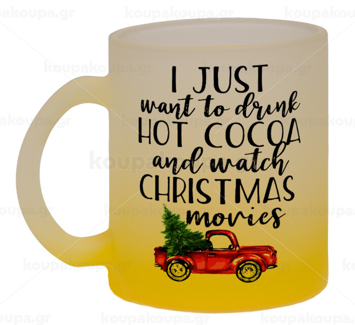 I just want to drink hot cocoa and watch christmas movies pickup car, Κούπα γυάλινη δίχρωμη με βάση το κίτρινο ματ, 330ml