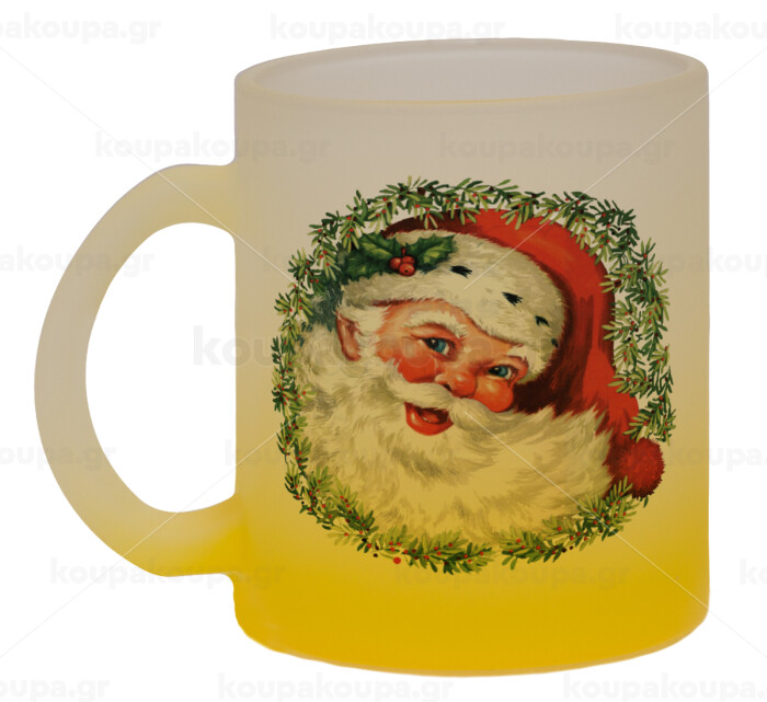 Santa Claus, Κούπα γυάλινη δίχρωμη με βάση το κίτρινο ματ, 330ml