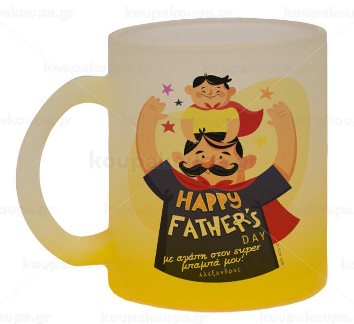 Daddy You Are my Hero, Κούπα γυάλινη δίχρωμη με βάση το κίτρινο ματ, 330ml