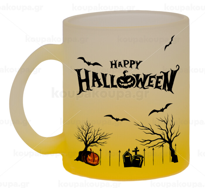 Happy Halloween (Χαλοουίν), Κούπα γυάλινη δίχρωμη με βάση το κίτρινο ματ, 330ml
