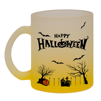 Happy Halloween cemetery, Κούπα γυάλινη δίχρωμη με βάση το κίτρινο ματ, 330ml