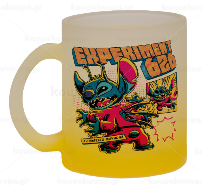 Stitch Experiment 626, Κούπα γυάλινη δίχρωμη με βάση το κίτρινο ματ, 330ml