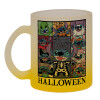 Halloween Friends, Κούπα γυάλινη δίχρωμη με βάση το κίτρινο ματ, 330ml