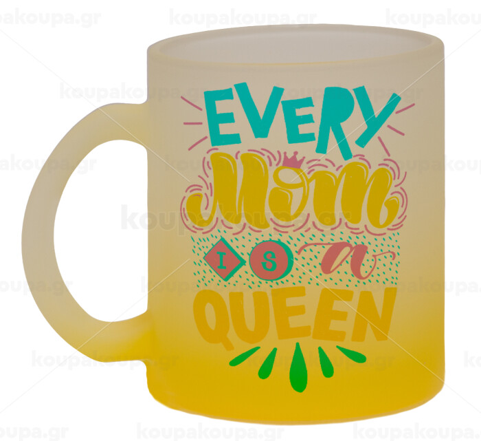 Every mom is a Queen, Κούπα γυάλινη δίχρωμη με βάση το κίτρινο ματ, 330ml
