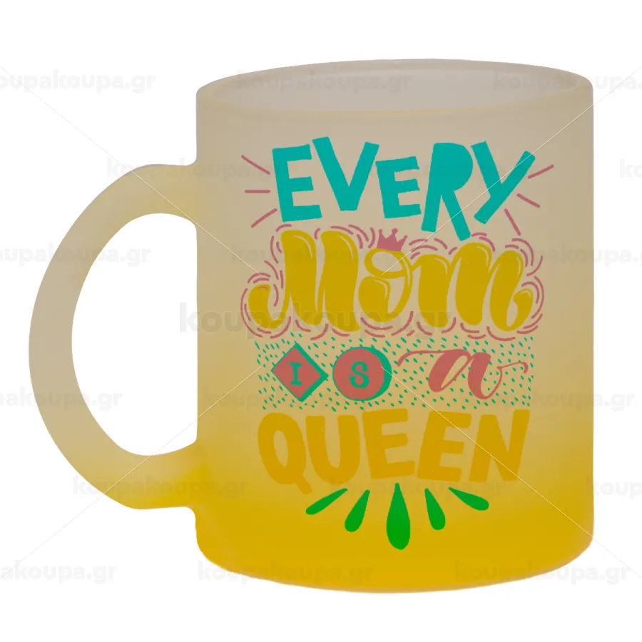 Every mom is a Queen, Κούπα γυάλινη δίχρωμη με βάση το κίτρινο ματ, 330ml