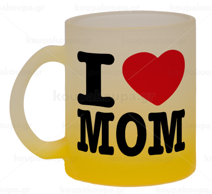 I LOVE MOM, Κούπα γυάλινη δίχρωμη με βάση το κίτρινο ματ, 330ml