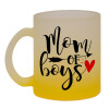 Mom of boys, Κούπα γυάλινη δίχρωμη με βάση το κίτρινο ματ, 330ml