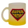 Super Mom 3D, Κούπα γυάλινη δίχρωμη με βάση το κίτρινο ματ, 330ml