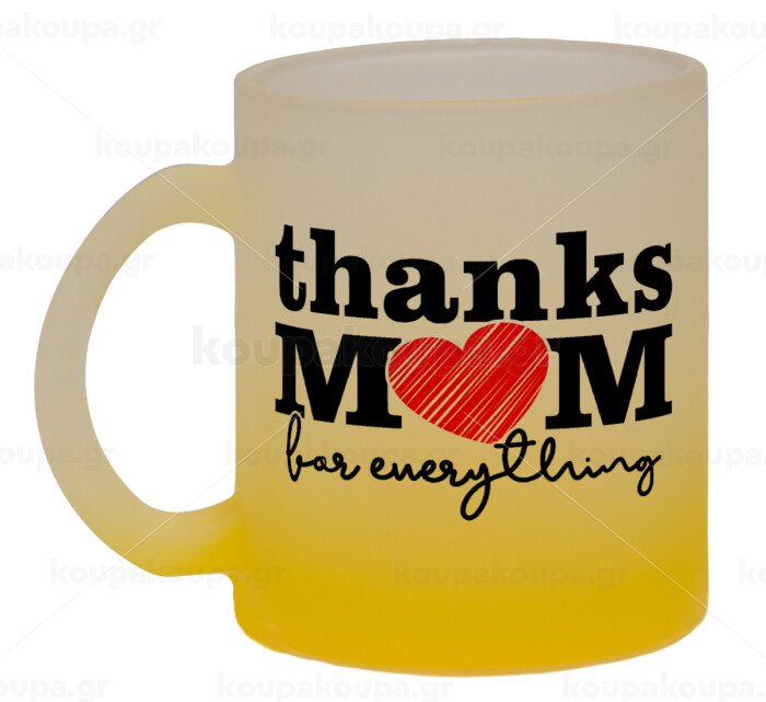 Thanks mom for everything, Κούπα γυάλινη δίχρωμη με βάση το κίτρινο ματ, 330ml