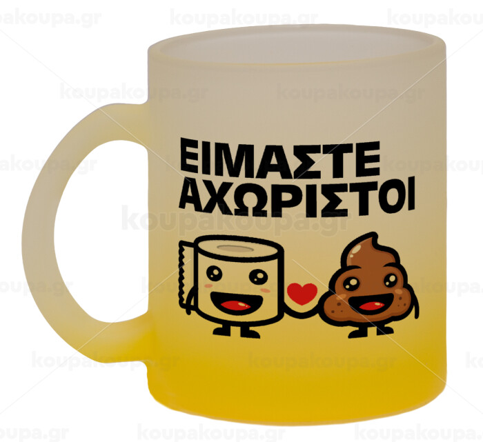 Είμαστε αχώριστοι, Κούπα γυάλινη δίχρωμη με βάση το κίτρινο ματ, 330ml