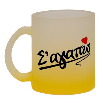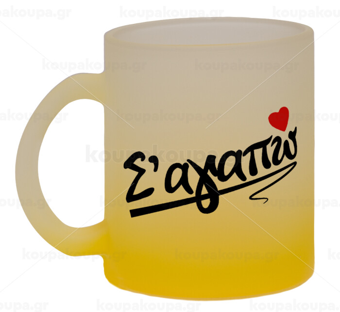 Σ΄ αγαπώ!!!, Κούπα γυάλινη δίχρωμη με βάση το κίτρινο ματ, 330ml
